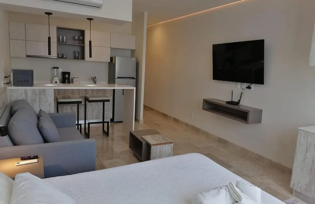 Estrena Exclusivo Estudio De Lujo apartment provides guests with a terrace and a fully equipped kitchen, as well as such modern comforts as an air conditioner.